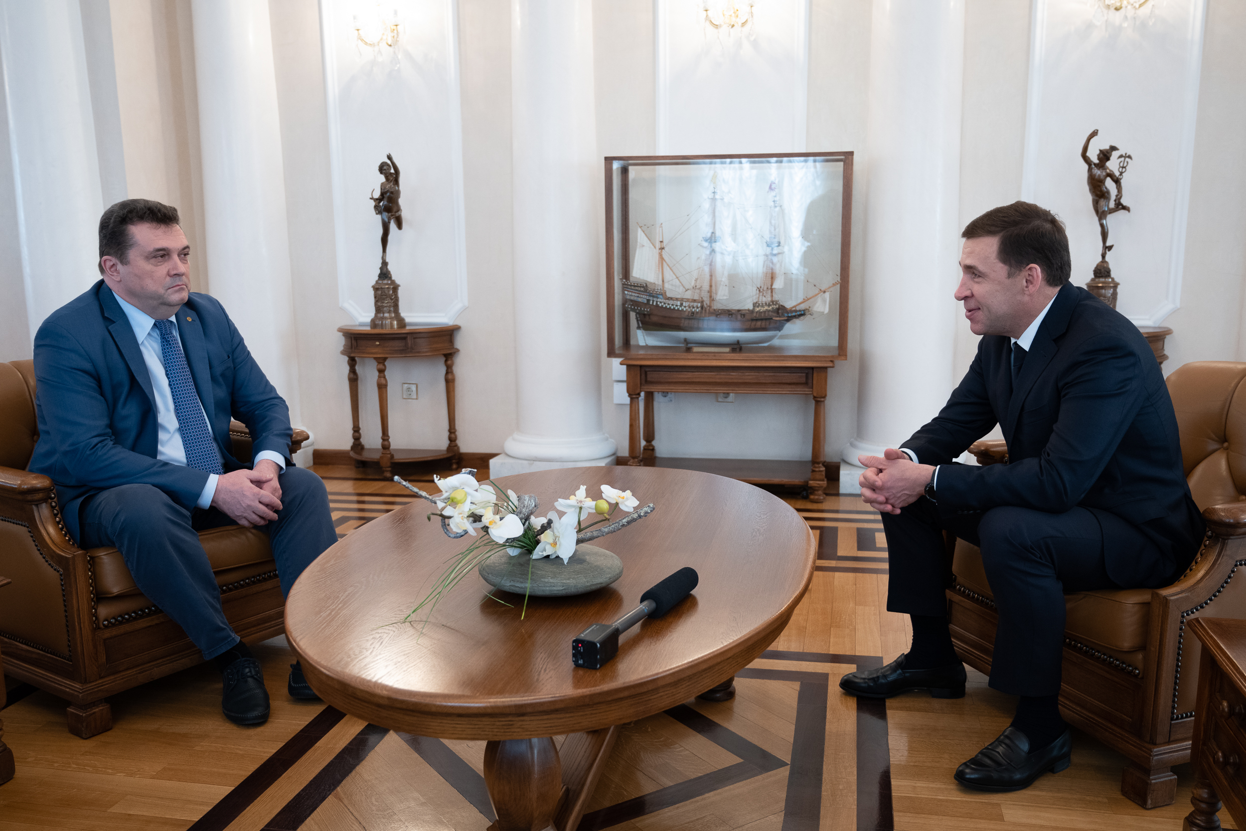 Губернатор Евгений Куйвашев и председатель Союза журналистов России Владимир Соловьёв 29 апреля в ходе рабочей встречи обсудили вопросы взаимодействия власти и медиасообщества.