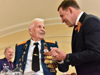 Евгений Куйвашев поздравил ветерана Владимира Лупейко, который празднует свой 100-летний юбилей в День Победы