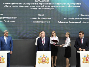 Губернатор Свердловской области Евгений Куйвашев 5 июля подписал соглашение с главой Екатеринбурга Алексеем Орловым и президентом Группы "Эталон" Геннадием Щербиной о развитии микрорайона Солнечный. Договоренность достигнута на полях Международной промышленной выставки ИННОПРОМ-2022.