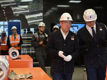 На Синарском трубном заводе (предприятие ТМК) губернатору презентовали линию по производству труб и учебный полигон ТМК2, где идёт подготовка будущих высококлассных специалистов завода.