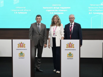 Соглашение о предоставлении беспроцентных образовательных кредитов в рамках программы поддержки студентов "Кампус" подписали 11 июля на полях выставки ИННОПРОМ губернатор Евгений Куйвашев, председатель Уральского банка Сбербанка Дмитрий Суховерхов и директор Уральского фонда поддержки студенчества "Кампус" Ольга Котлярова.