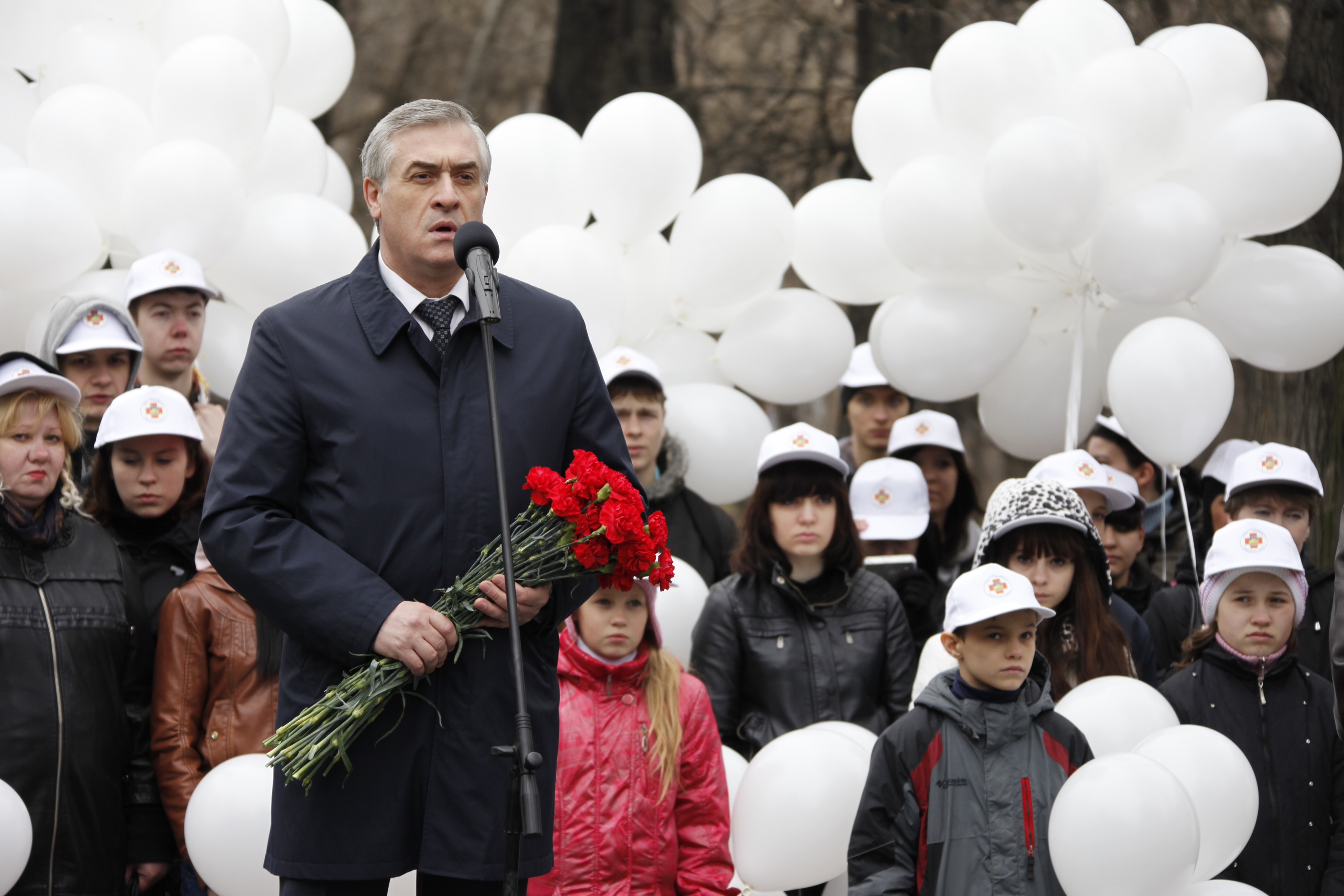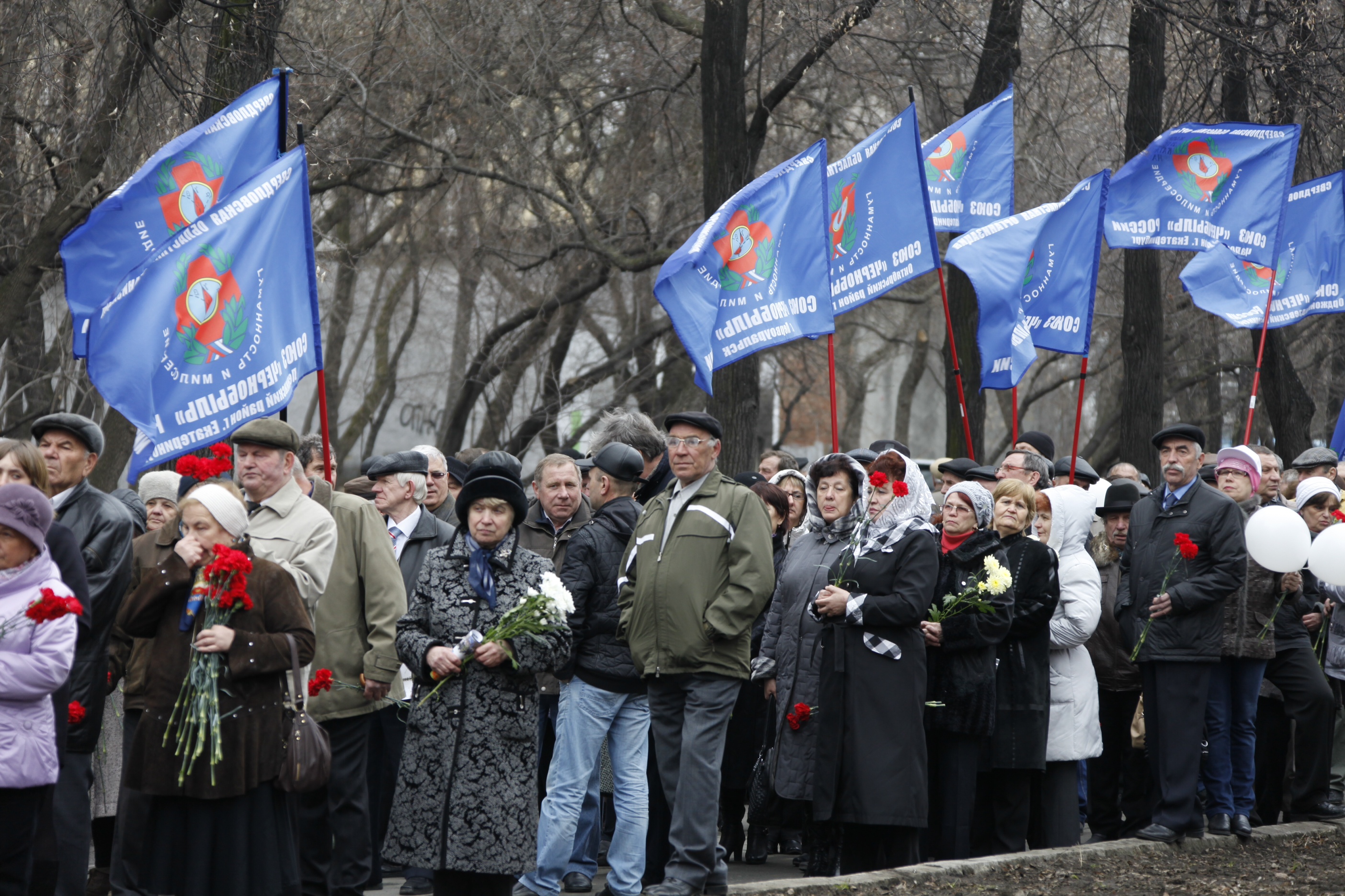 Около тысячи членов Свердловской областной организации инвалидов Союз "Чернобыль" России возложили цветы к Памятному знаку и почтили память погибших товарищей "минутой молчания", вместе с детьми они запустили в небо воздушные шары.