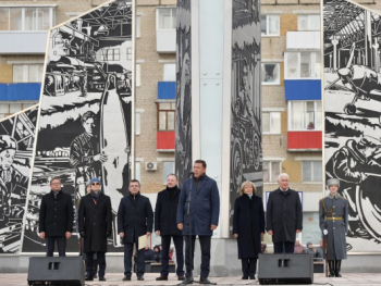 Евгений Куйвашев в День народного единства вместе с сотнями свердловчан принял участие в открытии стелы "Город трудовой доблести" в Каменске-Уральском