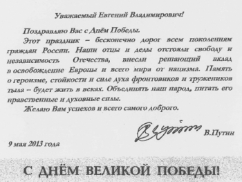 "Этот праздник — бесконечно дорог всем поколениям граждан России. Наши отцы и деды отстояли свободу и независимость Отечества, внесли решающий вклад в освобождение Европы и всего мира от нацизма. Память о героизме, стойкости и силе духа фронтовиков и тружеников тыла – будет жить в веках. Объединять наш народ, питать его нравственные и духовные силы", — сказано в поздравлении.