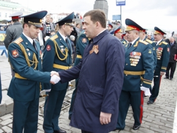 Евгений Куйвашев 9 мая приветствовал участников парада в Екатеринбурге в честь 68-й годовщины победы в Великой Отечественной войне. Вместе с губернатором на главной трибуне площади 1905 года — ветераны, вице-губернатор – руководитель администрации губернатора Яков Силин, председатель правительства Среднего Урала Денис Паслер, члены Совета Федерации Эдуард Россель и Аркадий Чернецкий, председатель Законодательного собрания Людмила Бабушкина, представители духовенства.