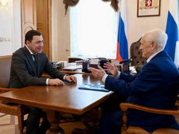 Губернатор Евгений Куйвашев и председатель Свердловской областной общественной организации ветеранов Юрий Судаков на рабочей встрече 15 марта обсудили вопросы взаимодействия регионального правительства и ветеранских организаций.