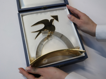 Символ проекта создан по эскизу петербургской художницы Надежды Протопоповой в Екатеринбурге. Скульптура "Блокадной ласточки" выполнена из льдистого кварца и металла, покрытого золотом 999-й пробы. В ходе торжественного мероприятия символ проекта передан консулу Узбекистана в Екатеринбурге Улугбеку Халлакову.