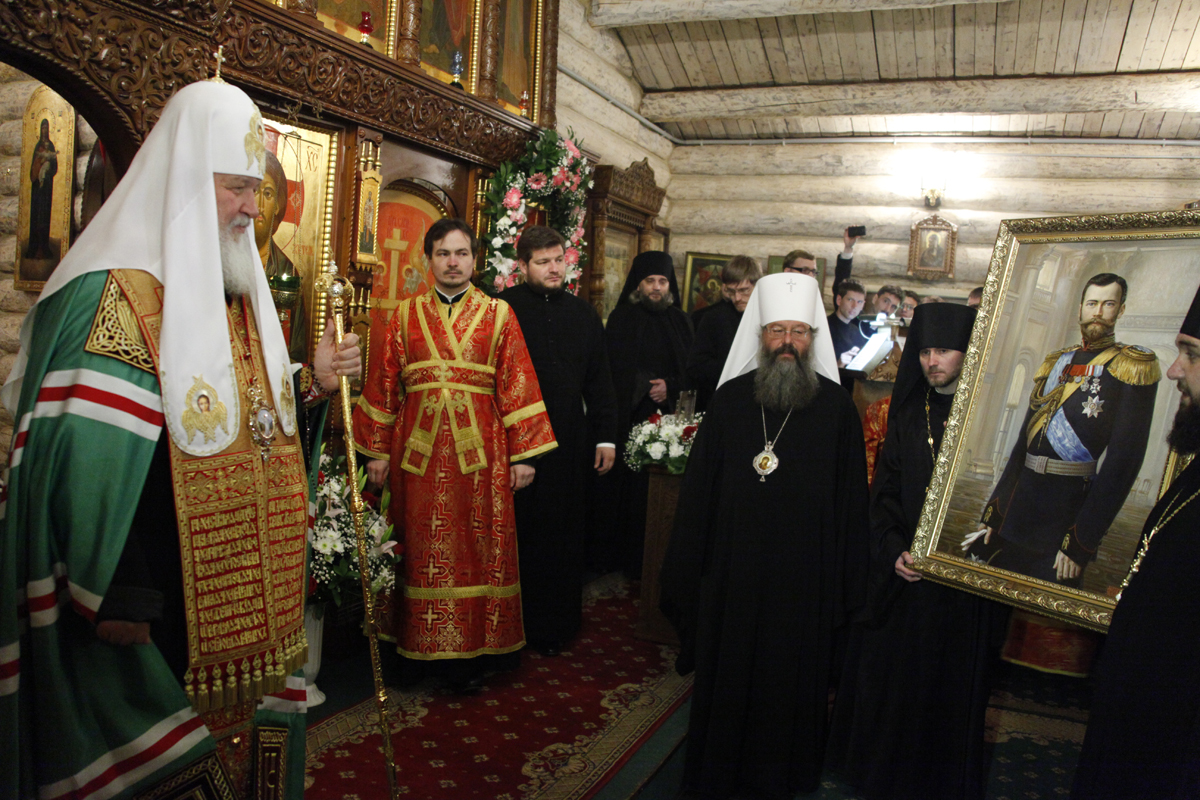 "Эти круглые даты совпали. И это дает нам возможность подумать об истории нашего Отечества, о трагедии нашего народа, еще раз вспомнить о духовном подвиге государя-императора и его семьи", — сказал Святейший Патриарх.