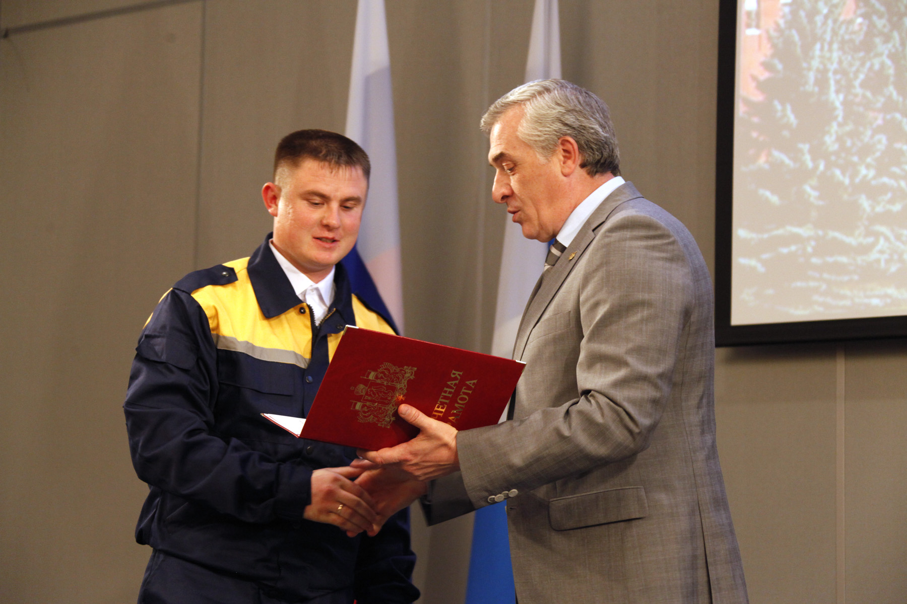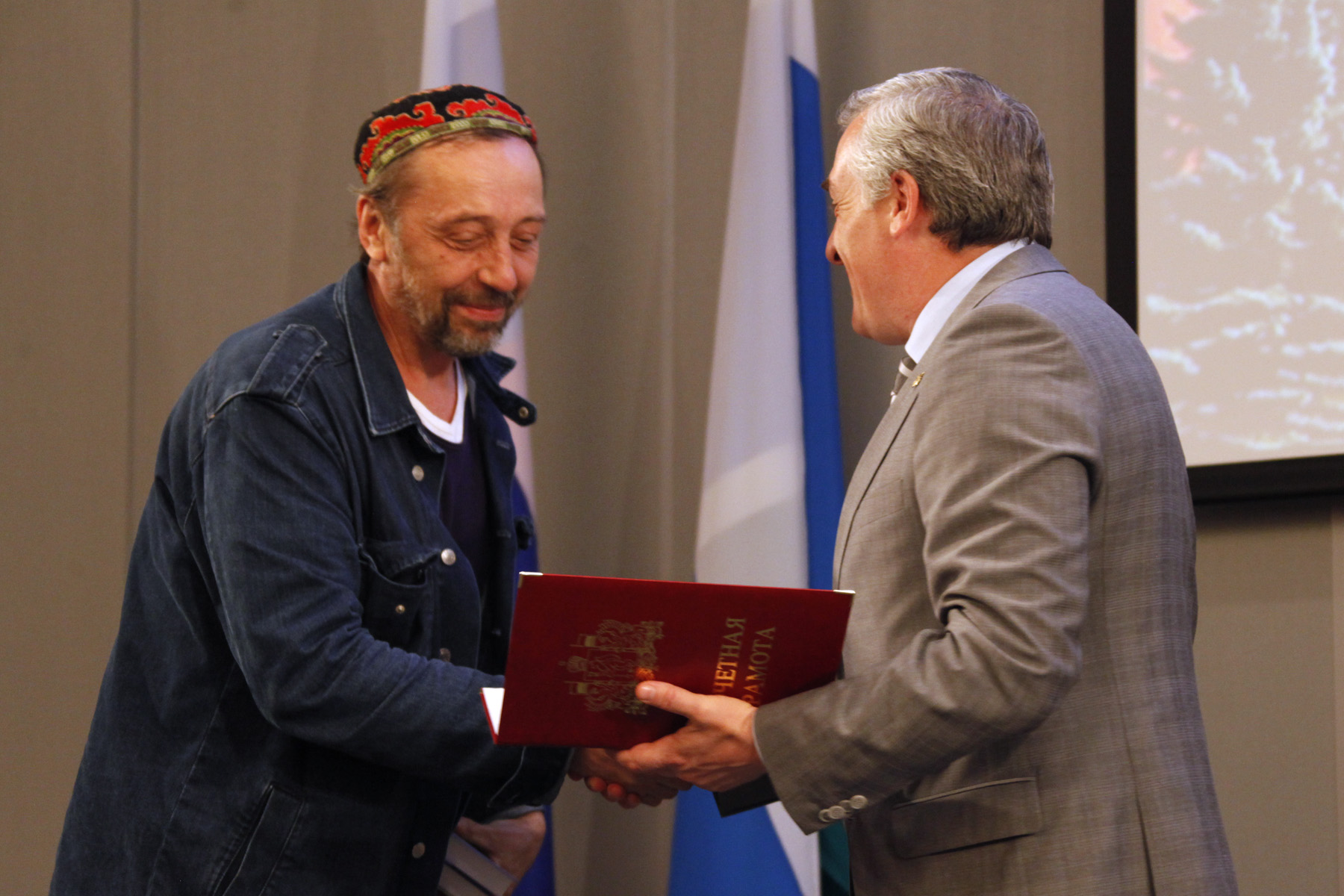 Он вручил Почетные грамоты губернатора Свердловской области ряду наших земляков, среди которых Евгений Анимица – доктор географических наук, профессор, заведующий кафедрой региональной и муниципальной экономики Уральского государственного экономического университета, Михаил Йолич – спасатель Карпинского поисково-спасательного отряда, Николай Коляда – доцент кафедры истории искусств екатеринбургского государственного театрального института, заслуженный деятель искусств Российской Федерации."Мне приятно, что этой грамотой оценена моя двадцатилетняя деятельность по подготовке ребят, кто пишет пьесы. С 21 июня в Екатеринбурге пройдет фестиваль "Коляда плэйз", где будут представлены лучшие творения моих студентов и выпускников. И большое спасибо, что в придачу к грамоте губернатор выделил 5 миллионов рублей на проведение этого фестиваля, жду вас всех!", — сказал в ответном слове Николай Коляда.