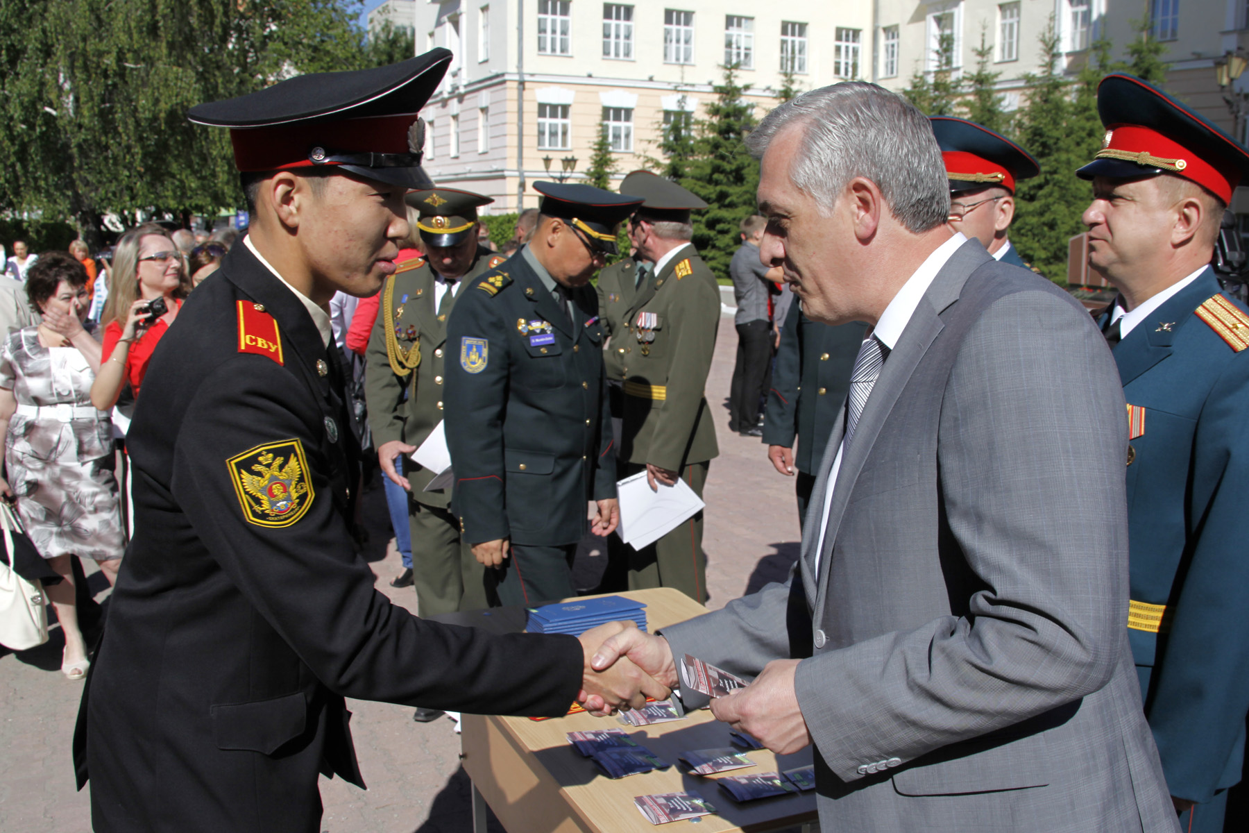 "Уверен, что за годы учебы вы отлично усвоили традиции, которые созвучны наказам великого полководца Александра Васильевича Суворова: "Дисциплина – мать победы", "Тяжело в учении – легко в походе!", "Сам пропадай, а товарища выручай!", — сказал Яков Силин, обращаясь к выпускникам.