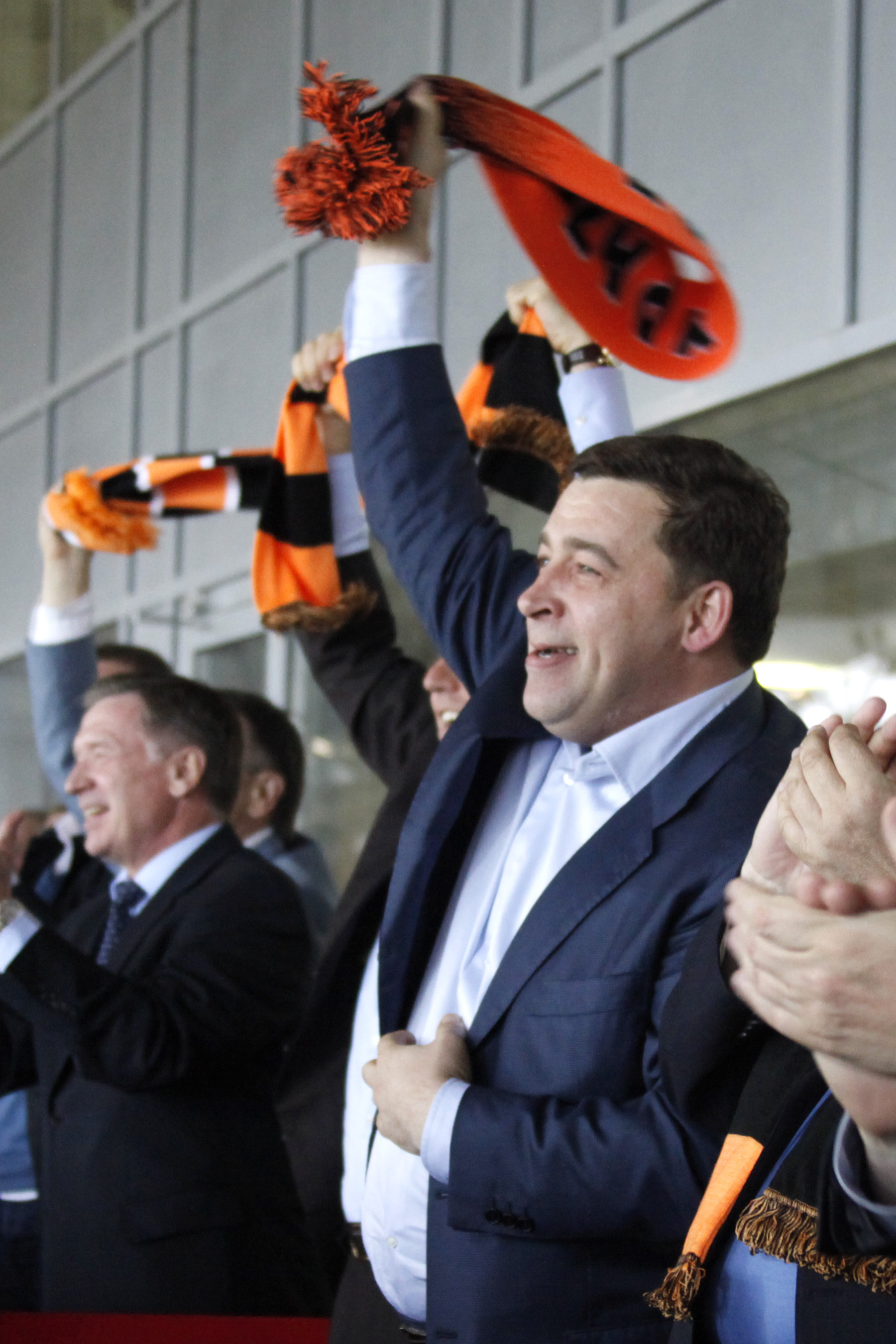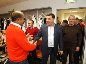 "Молодцы! Я со старожилами говорил, стадион таким полным давно не был — вы сами это видели. И сыграли вы на самом высоком уровне. В первом тайме немножко мандраж был, а потом собрались. Вам не было слышно, а мы слышали, как эмоционально встречал вас стадион. За это вам огромное спасибо", — сказал Евгений Куйвашев.