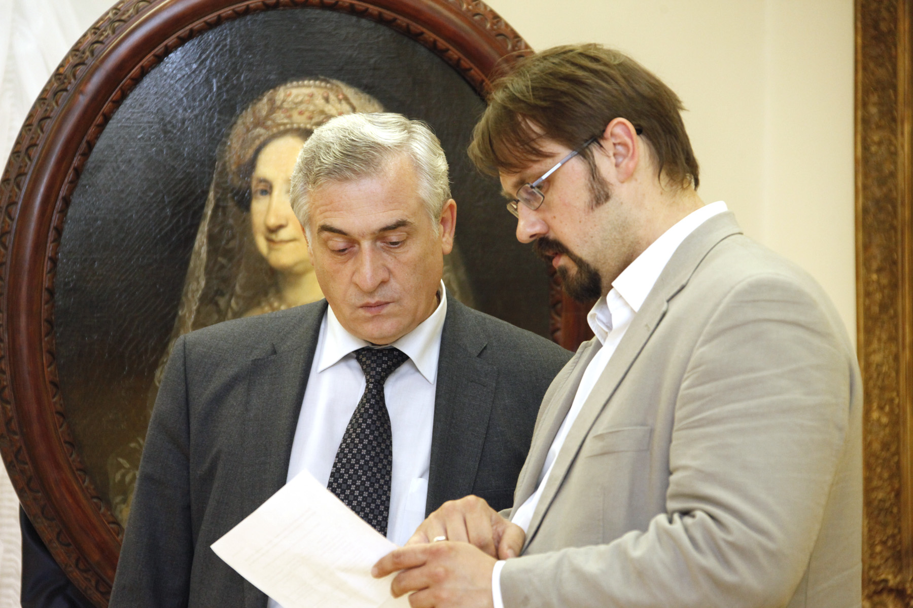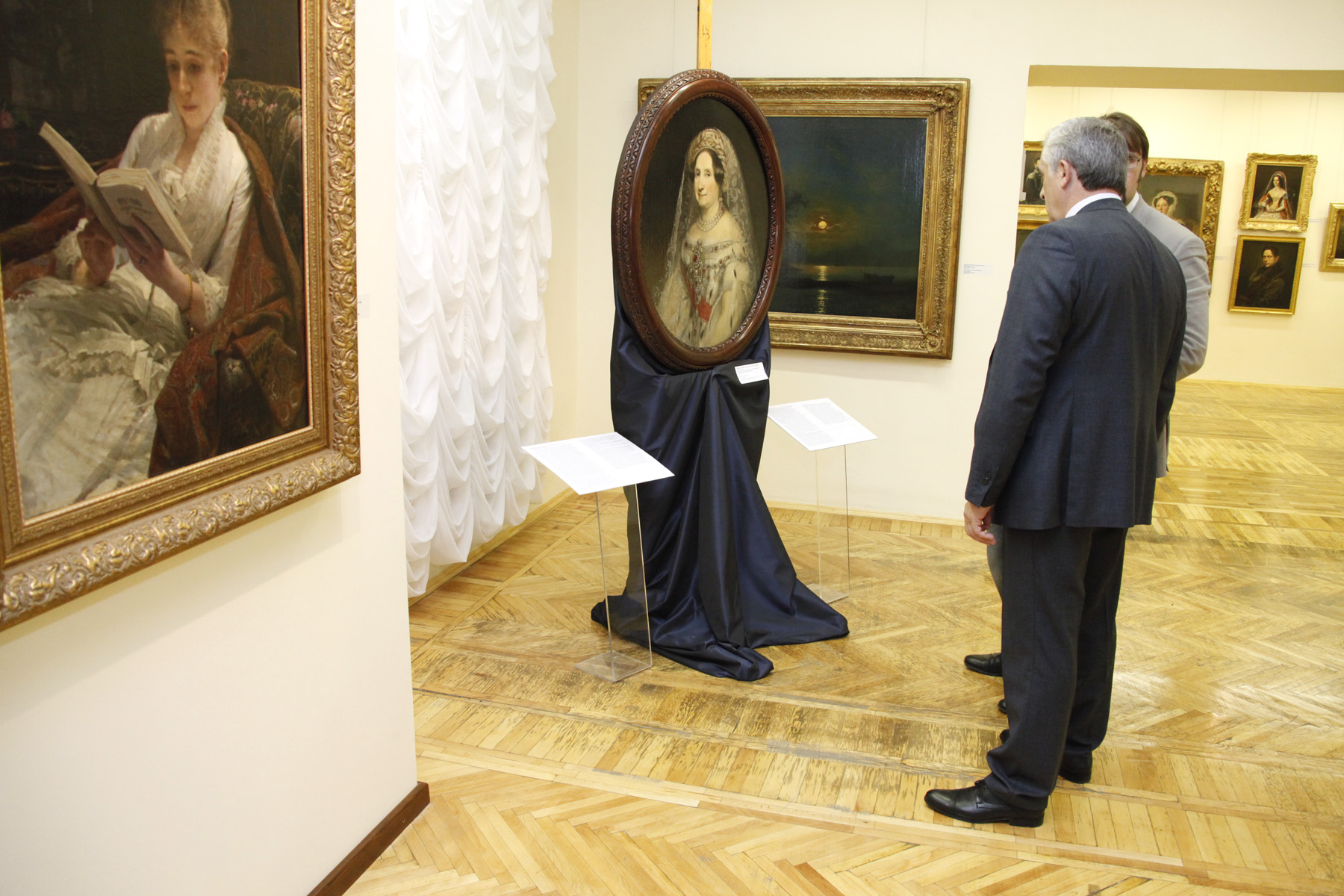 Вместе с директором музея изобразительных искусств Никитой Корытиным вице-губернатор ознакомился с экспозициями трех выставочных залов, которые будут доступны для посещения в День пенсионера. Сейчас в залах размещается уникальная коллекция ювелирных изделий, живописи, созданной уральскими мастерами или связанной с историей нашего края, а также художественное каслинское литье.