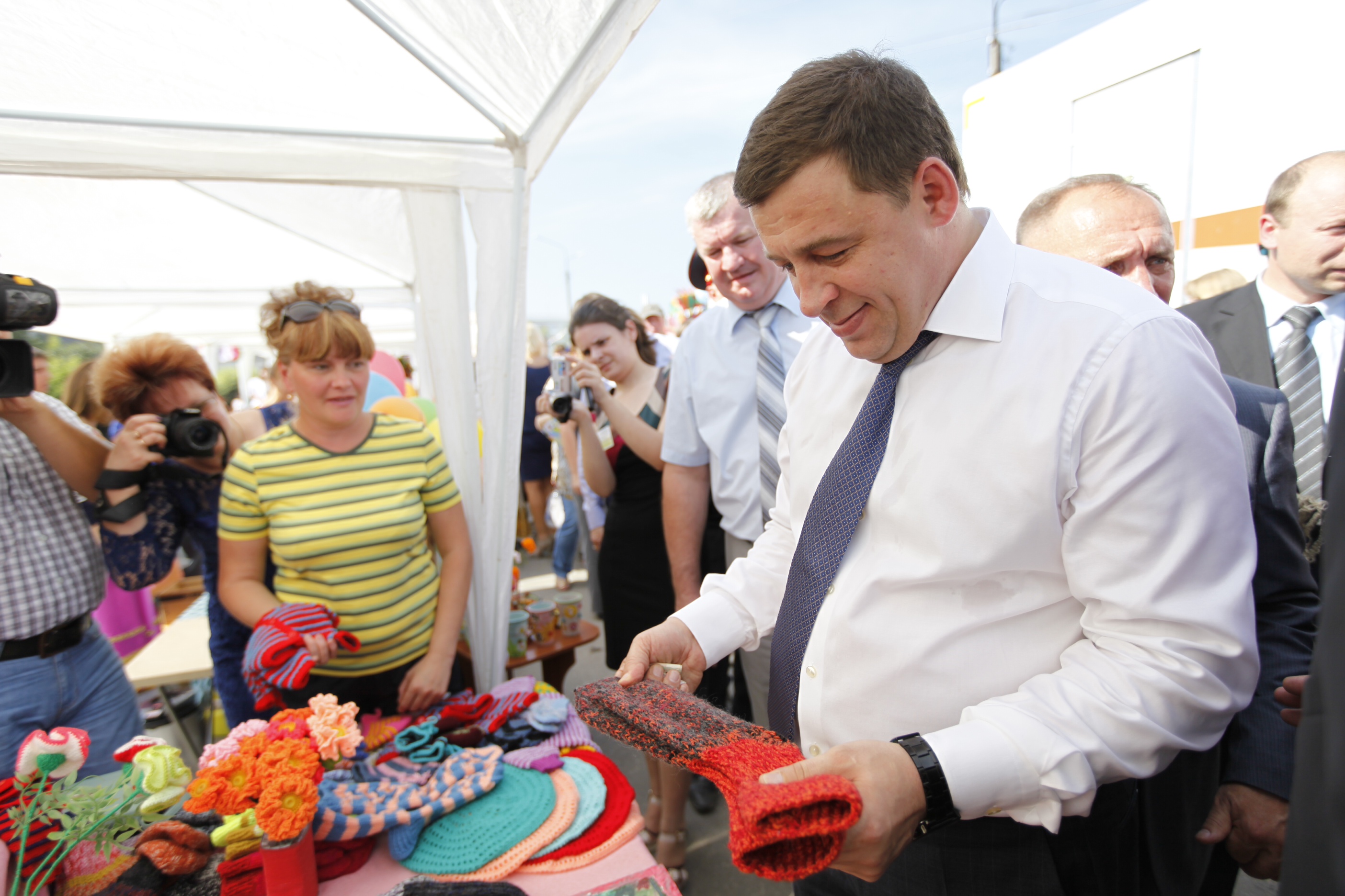 По завершении церемонии открытия Евгений Куйвашев обошел торговые ряды ярмарки.