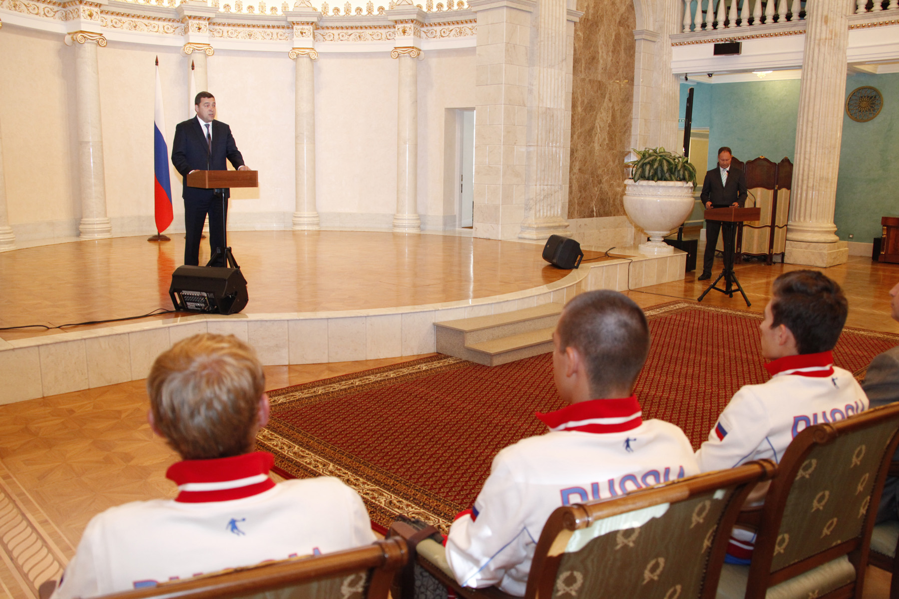 "Я внимательно следил за ходом соревнований, восхищался вашей целеустремленностью и решимостью, способностью сконцентрироваться на достижении результата, побеждать самых сильных конкурентов. Все вы еще очень молоды, и главные жизненные достижения еще ждут вас впереди. Вы успеваете не только блистать на российских и международных соревнованиях, но и плодотворно учиться, получать основную профессию. Век любого спортсмена ограничен во времени, и после завершения спортивной карьеры вы продолжите заниматься тем, что вам по душе, станете отличными руководителями и менеджерами, ценными специалистами и профессионалами", — сказал Евгений Куйвашев.