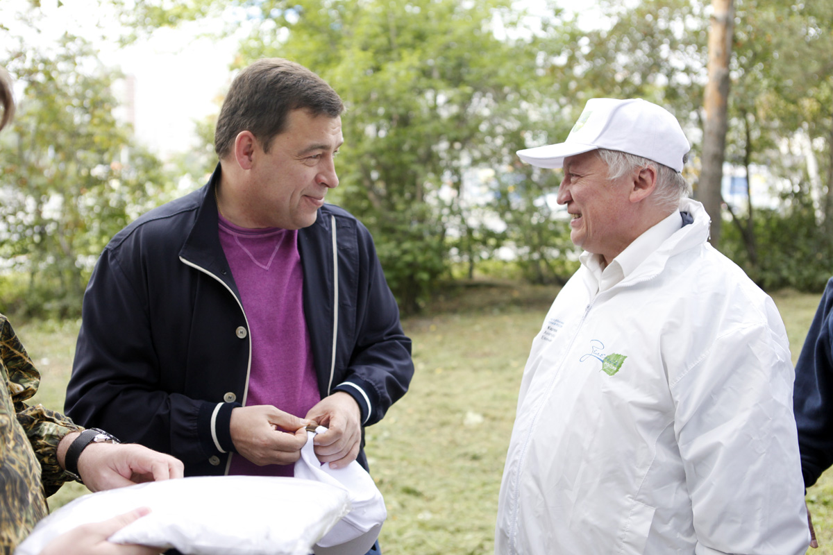 Евгений Куйвашев и Анатолий Карпов вышли на субботник в Екатеринбурге