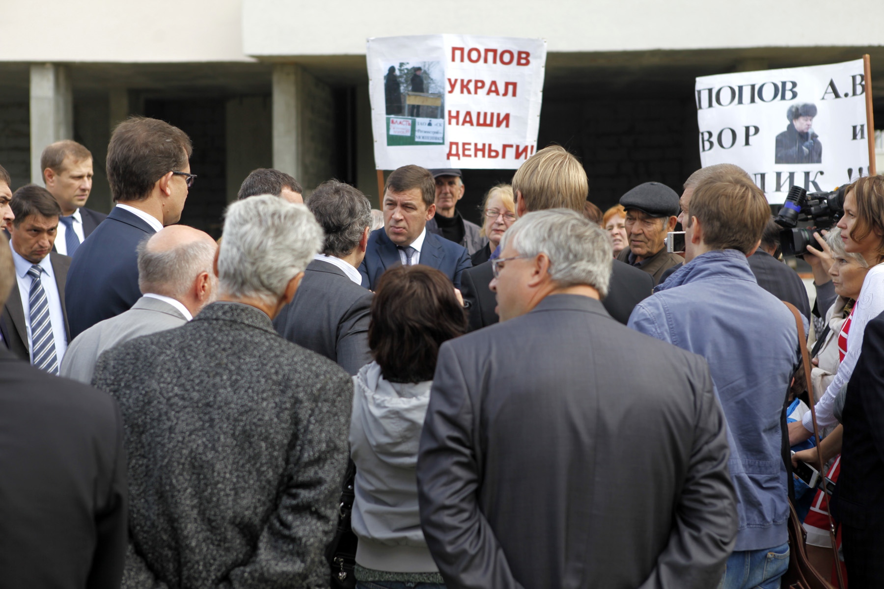 "Вы мне обещали, мы с вами четыре месяца назад говорили об этом. Можно сейчас юридически оформить документы, чтобы закончить стройку? Почему вы их не передаете? Через час мы у вас в офисе встречаемся с застройщиком для передачи документов", — сказал Евгений Куйвашев, обращаясь к Александру Попову.