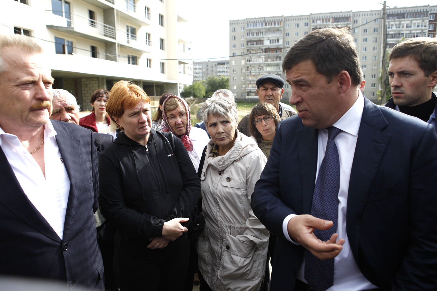 Евгений Куйвашев 3 сентября на стройплощадке в Верхней Пышме провел совещание, в котором приняли участие представители компании "Регионстрой", пайщики ЖСК "Уютный", а также руководители силовых ведомств региона – прокурор Свердловской области Сергей Охлопков и глава СУ СК России по региону Валерий Задорин.