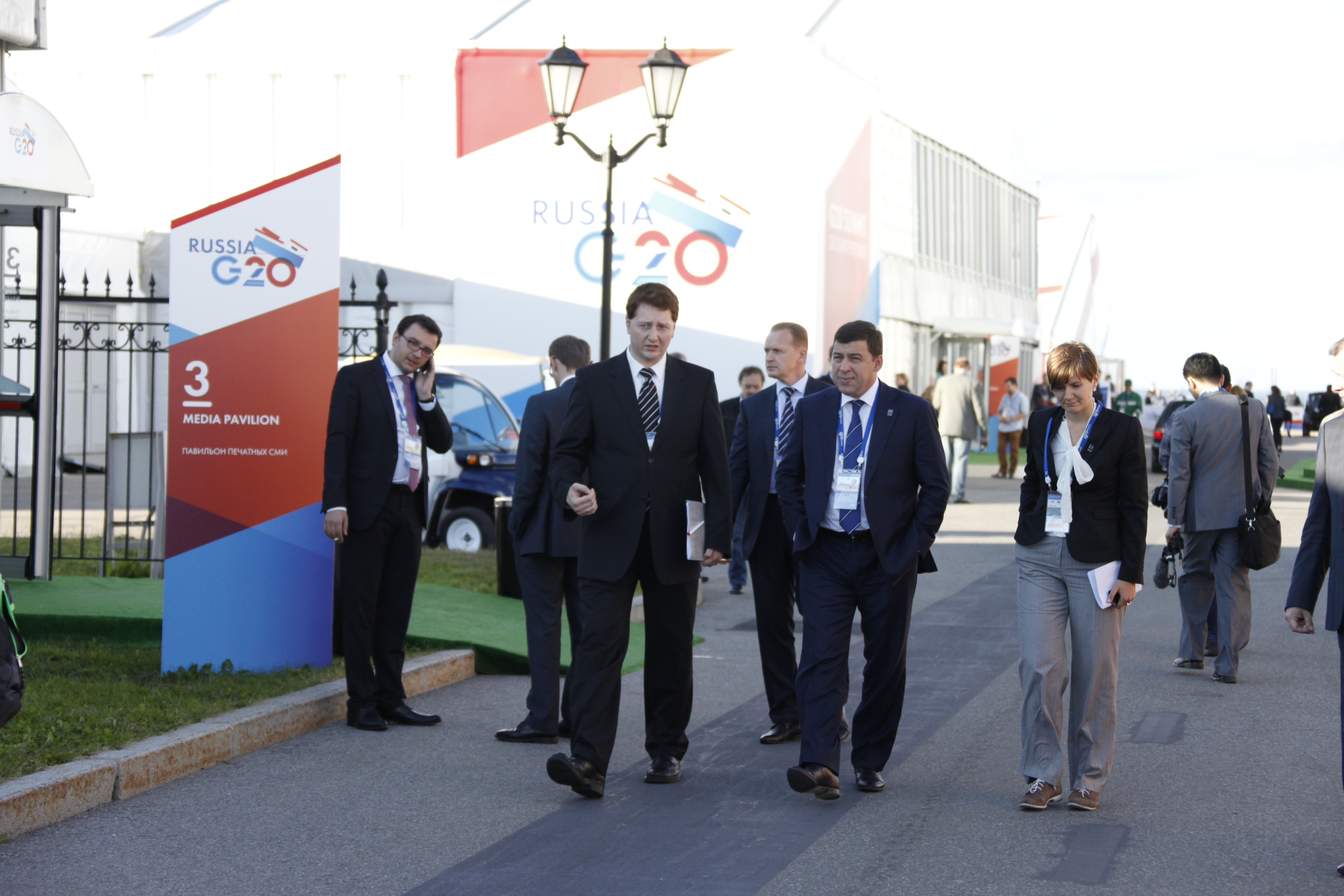 Губернатор пригласил журналистов, которые принимают участие в G20, посетить Екатеринбург и лично познакомиться с его богатым потенциалом. "Я вижу тех, кто уже был у нас в городе. Тех же, кто не бывал на Урале, я приглашаю приехать к нам. Свердловская область и Екатеринбург — быстро развивающийся и интересный регион. Те, кто был у нас пять лет назад, сегодня не узнают город", — сказал он.