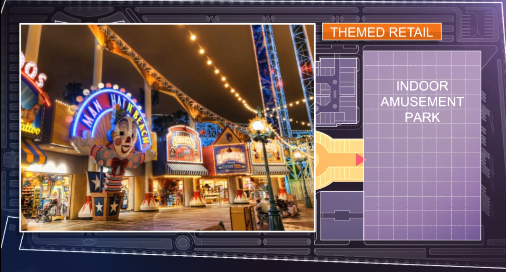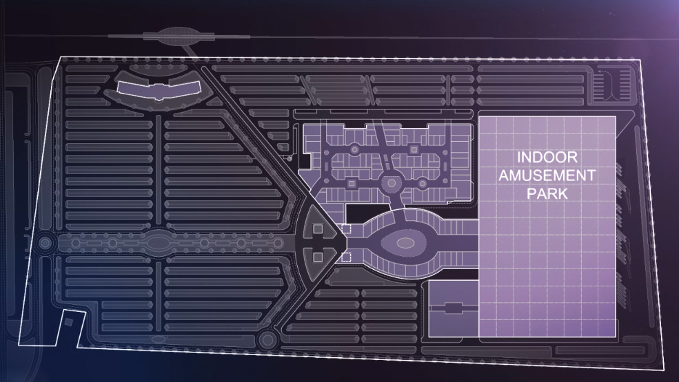 Здание площадью 100 тысяч квадратных метров высотой порядка 30 метров объединит несколько тематических зон, посвященных брэндам анимационной студии – Шрэку, героям "Мадагаскара", мультфильмов "Как приручить дракона", "Турбо", "Кунг-фу Панда". Под крышей тематического парка можно будет посетить "летающий театр", "американские горки" и "гигантский пинбол". Кроме того, здесь появится зона тематической торговли, 20 кинозалов, "Парк динозавров", отель. Для удобства гостей рядом с парком организуют парковку на 11 тысяч мест.