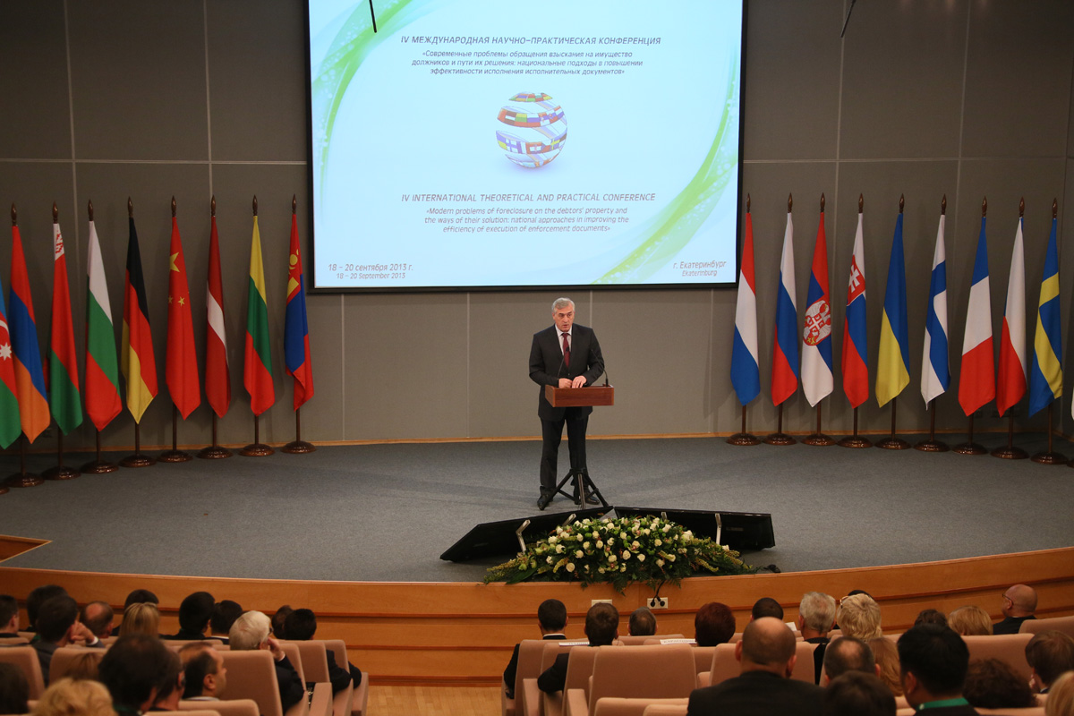 Как отметил ректор Уральской государственной юридической академии Владимир Бублик, Свердловская область — центр Евро-Азиатского пространства, крупнейший экономический, торговый, транспортный узел страны, заинтересована в упрочении безопасности, формировании единого правового пространства, расширении международного и межрегионального взаимодействия. Поэтому сегодняшняя конференция – важнейшее звено в этом процессе.