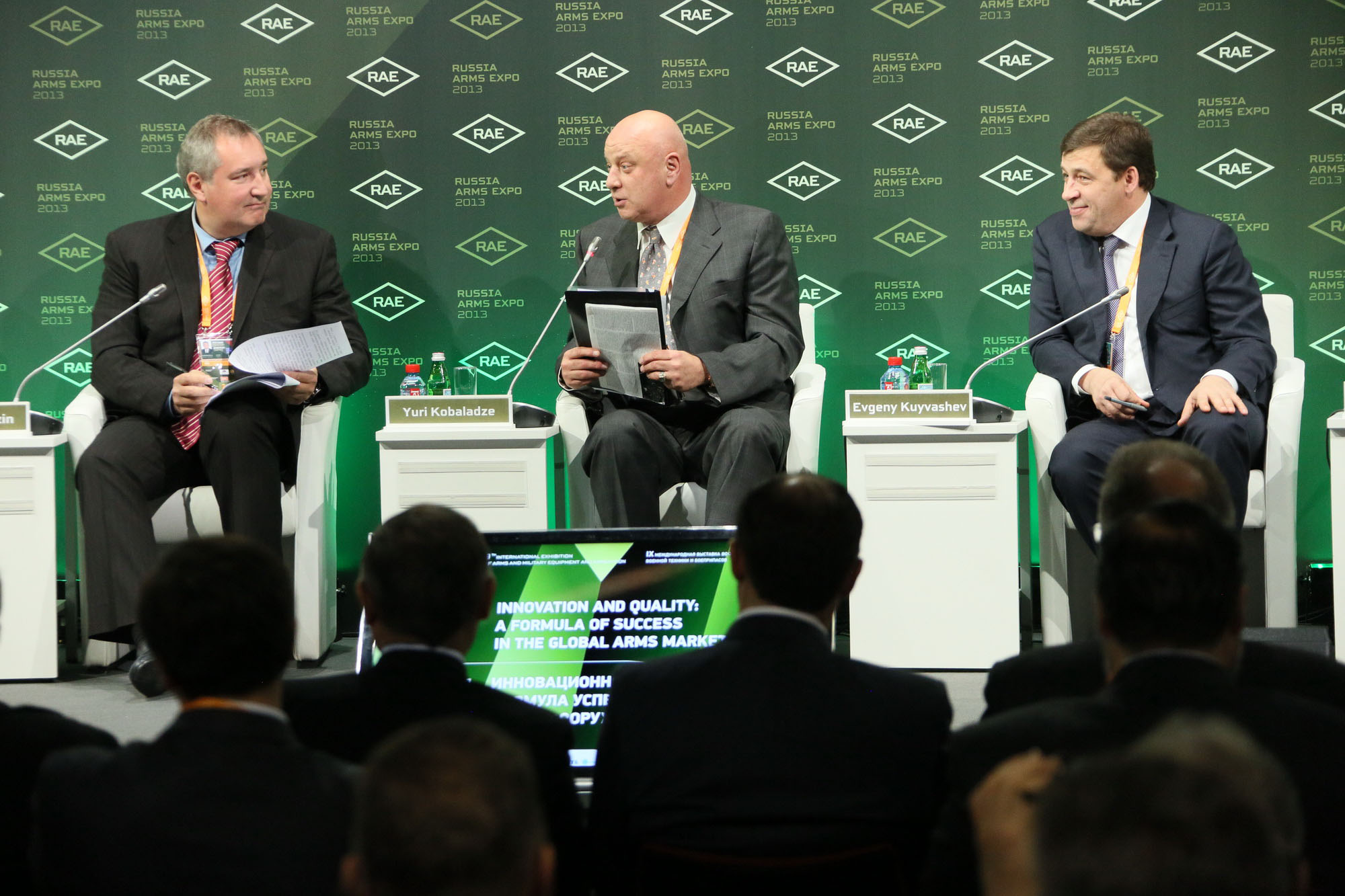 Губернатор Евгений Куйвашев, вице-премьер России Дмитрий Рогозин и международные эксперты в области вооружения 25 сентября, в первый день работы IX Международной выставки вооружения, военной техники и боеприпасов (RAE 2013) приняли участие в пленарной дискуссии "Инновационность и качество: формула успеха на глобальном рынке вооружения".