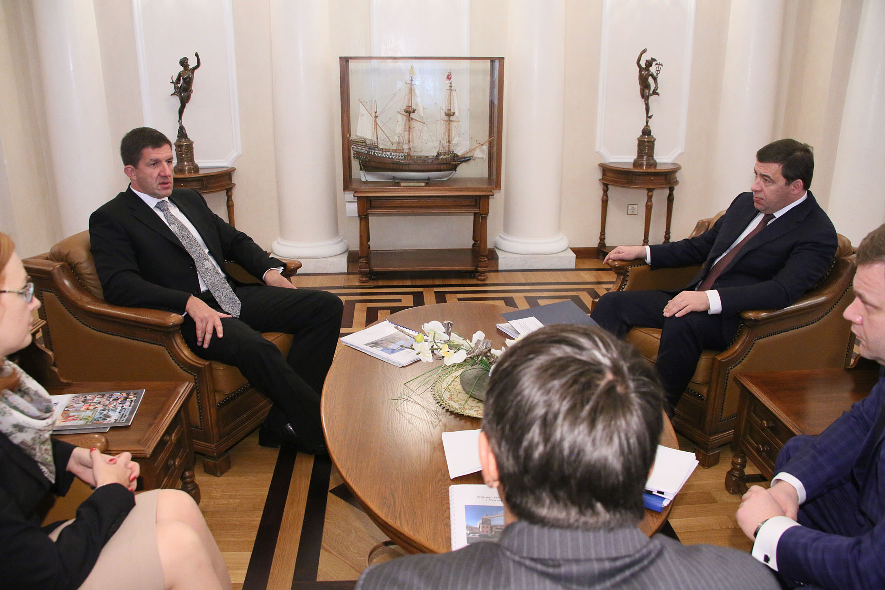 По мнению губернатора, есть немалые резервы для расширения сотрудничества: "Сейчас в нашем регионе реализуются такие крупные инвестиционные проекты, как создание особой экономической зоны "Титановая долина", строительство жилого района "Южный" в планировочном районе "Истокский", реконструкция вокзального комплекса станции Екатеринбург-Пассажирский, а также создание индустриальных парков на территории Свердловской области. Все они предоставляют широкие возможности и хорошие условия для инвестиций".
