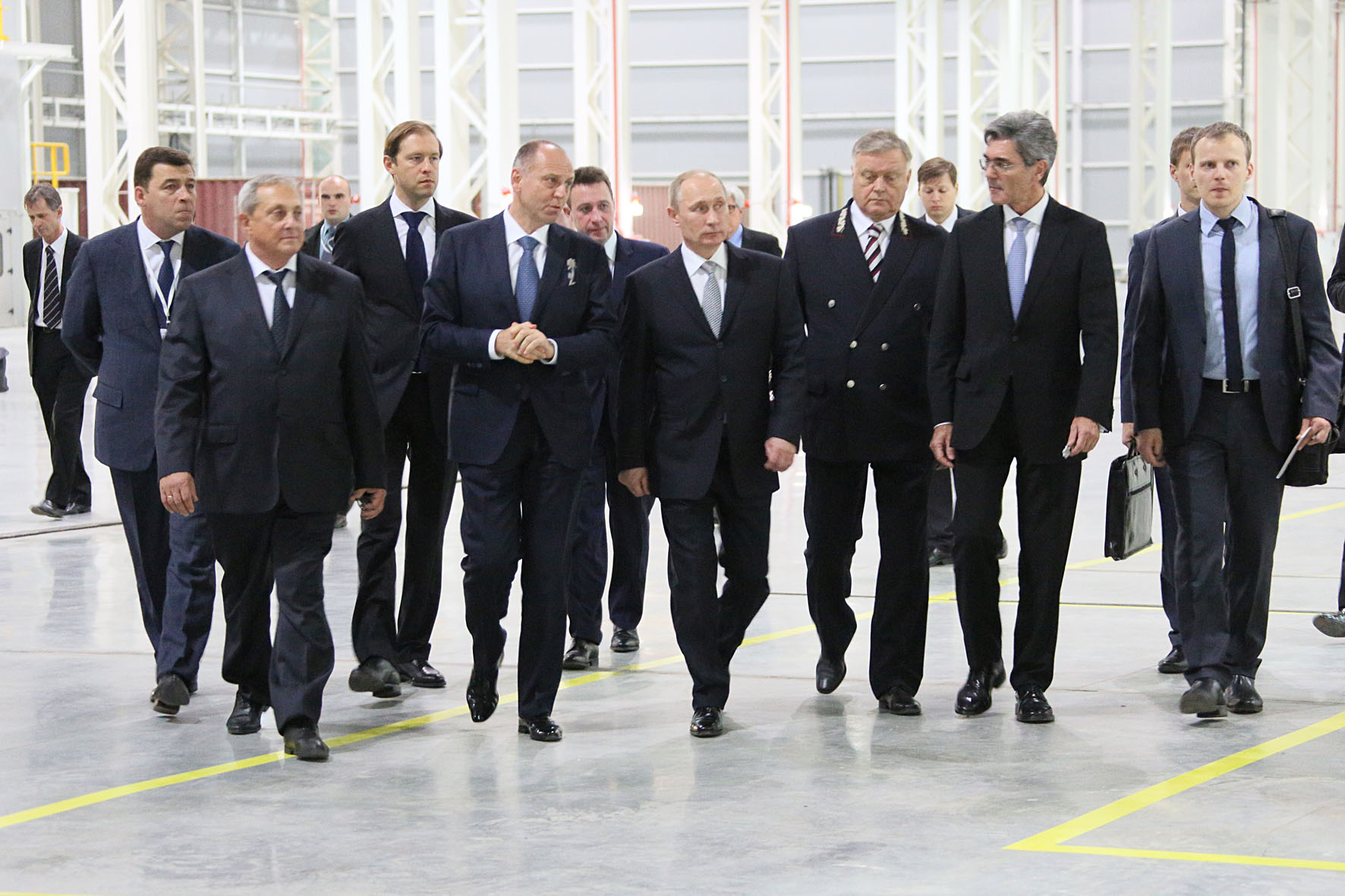 Президент Владимир Путин в сопровождении губернатора Евгения Куйвашева в завершение своего визита в Свердловскую область 11 ноября посетил завод "Уральские локомотивы", где в этот день был дан старт производству скоростных электропоездов "Ласточка". В мероприятии также приняли участие министр промышленности и торговли РФ Денис Мантуров, президент ОАО "РЖД" Владимир Якунин, председатель правления концерна "Сименс АГ" Джо Кэзер. Гости осмотрели производство кузовов, участок сборки вагонов, блок формирования поездов.