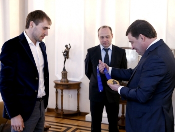 Евгений Куйвашев встретился с золотым призером Олимпиады в Сочи Антоном Шипулиным