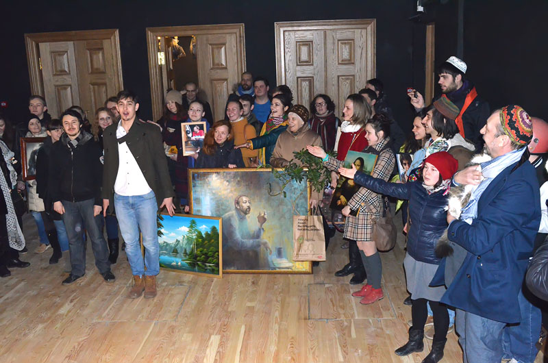 На сцене большого зала артисты устраивают импровизированный концерт. Пою хоров, в едином порыве.