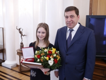 Евгений Куйвашев вручил Юлии Липницкой знак отличия "За заслуги перед Свердловской областью" и денежный сертификат