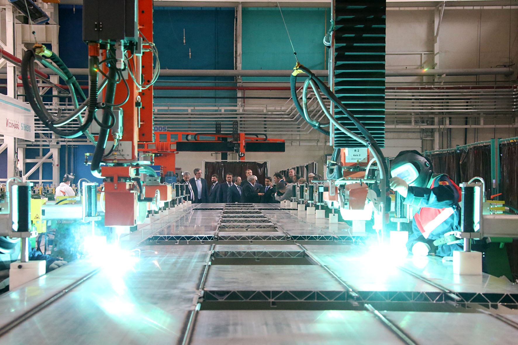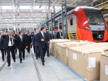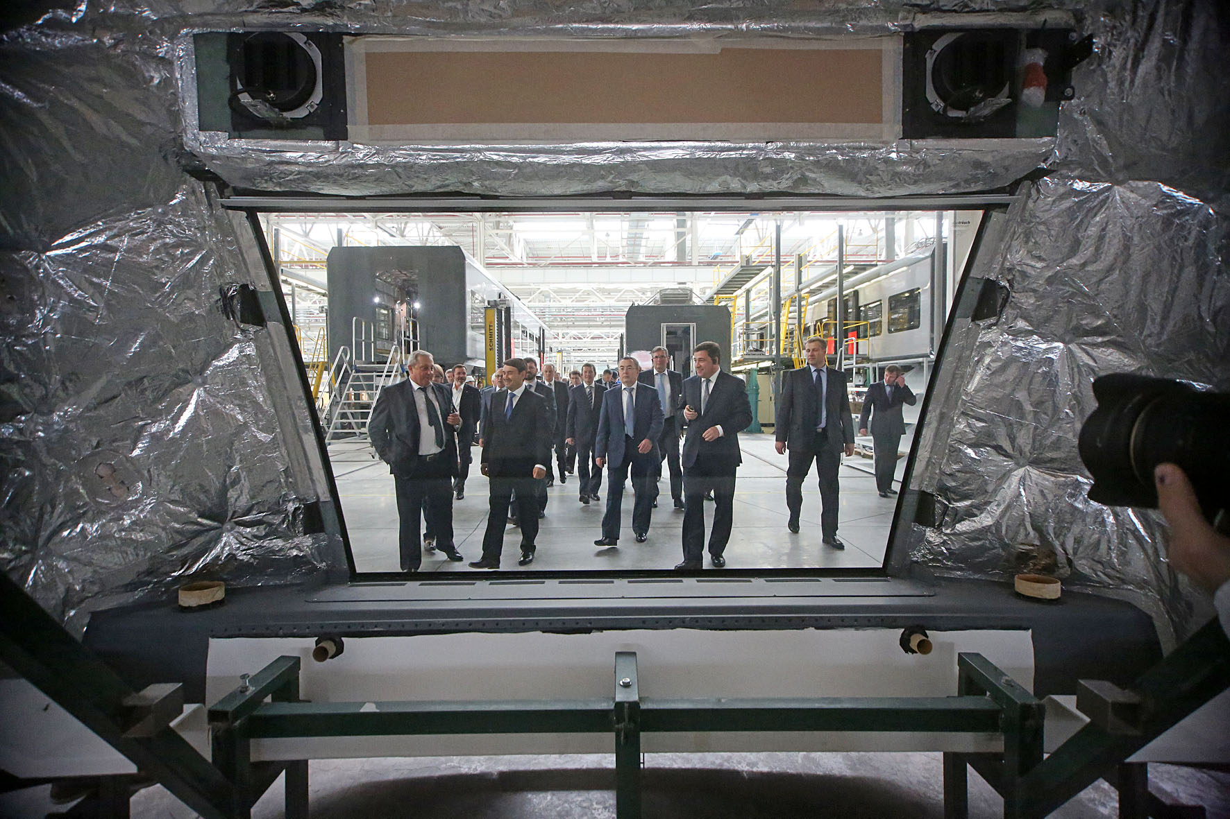 Игорю Левитину и Евгению Куйвашеву показали производственные цеха предприятия. Преимуществом завода является то, что в производстве локомотивов и электропоездов практически на 60 процентов использовано оборудование и детали российского производства.