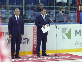 После завершения официальной церемонии открытия турнира Евгений Куйвашев произвел символическое вбрасывание шайбы на лед, дав старт матчу "Автомобилист" — "Барыс".