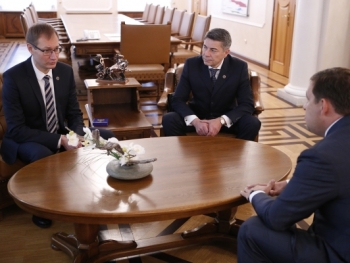 Губернатор Свердловской области Евгений Куйвашев 3 октября провел рабочую встречу с руководителем Федерального казначейства Романом Артюхиным и главой управления казначейства по Свердловской области Алексеем Пантелеевым.