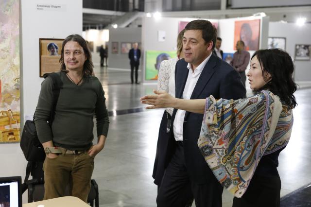 Евгений Куйвашев осмотрел экспозицию Евразийского фестиваля современного искусства