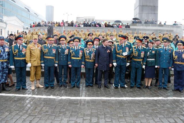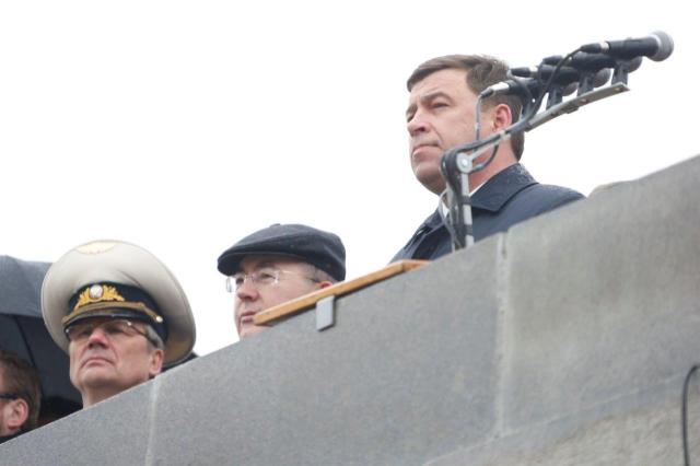 Евгений Куйвашев приветствовал участников парада Победы в Екатеринбурге