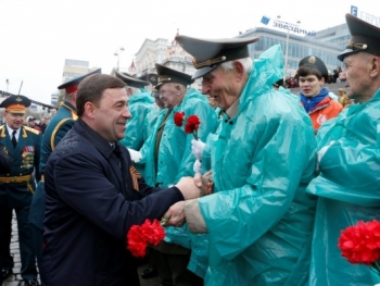 Губернатор поблагодарил ветеранов фронта и тыла Свердловской области за мужество и стойкость, за тот долгожданный мир, который они принесли на нашу землю в мае 1945 года.