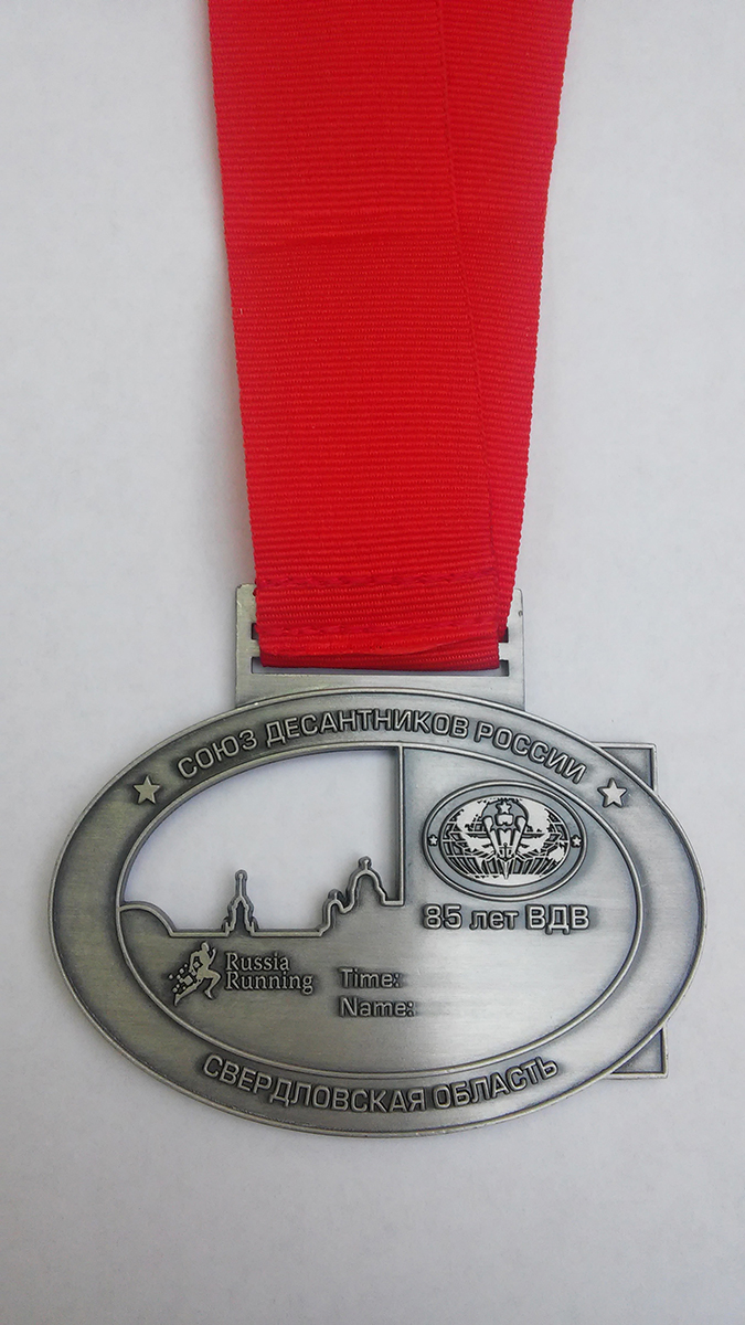 "Медаль для нашего марафона изготовлена из металла цвета "античное серебро". На знаке указана дата проведения марафона, дистанций, которые побегут участники, на обратной стороне медали указана организация, ответственная за проведение мероприятия – Союз десантников России, Свердловская область. Медаль крепится на красную ленту с надписью "Европа-Азия". На каждой медали есть место для лазерной гравировки имени участника и его времени преодоления дистанции. Нанести надпись можно будет на финишной площадке за символические деньги", – отметил Евгений Тетерин.