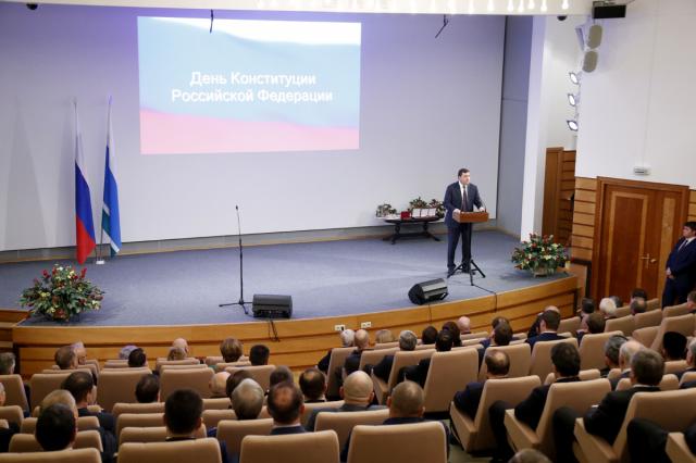 Губернатор напомнил, что совсем недавно, 25 ноября 2015 года, в Екатеринбурге открылся уникальный комплекс – Президентский центр Бориса Ельцина. В истории новой России Конституция страны и первый Президент связаны неразрывно. Выступая на открытии Центра, Президент Российской Федерации Владимир Путин подчеркнул: "Центр задумывался как отражение целой эпохи в истории нашей страны, эпохи радикальных перемен, крайне важных, сложных, и, конечно, противоречивых. Именно тогда, в условиях сурового политического противостояния, была принята Конституция нашей страны, на её четких положениях начался созидательный период нашего развития".