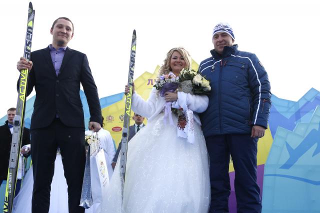 Праздничные мероприятия в этот день были связаны не только со спортом, но и с Днем влюбленных, который отмечается во всем мире 14 февраля. В честь этого праздника на спортивную площадку приехали три пары молодоженов. Организаторы вручили парам лыжи, а Евгений Куйвашев поздравил молодых с днем свадьбы.