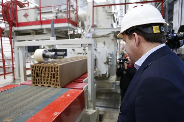 Губернатор Евгений Куйвашев и генеральный директор УГМК Андрей Козицын 13 апреля открыли на "Ревдинском кирпичном заводе" цех по изготовлению уникального для Урала строительного материала – крупноформатного пустотелого поризованного блока (керамического камня), применение которого способно вдвое ускорить строительство.