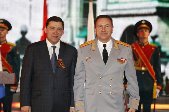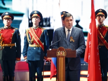 В ходе торжественного собрания губернатор Евгений Куйвашев отметил, что Свердловская область внесла огромный вклад в достижение Великой Победы. В военные годы в регионе была создана мощнейшая промышленная база. Уральцы героически сражались на всех фронтах Великой Отечественной войны, пройдя с боями от Москвы до Берлина. Настоящим человеческим и гражданским подвигом стало формирование Уральского гвардейского добровольческого танкового корпуса.