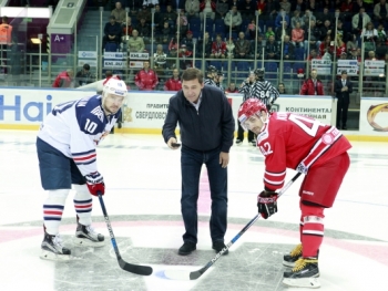 Сегодня "Автомобилист" на своей площадке играет первый матч сезона с магнитогорским "Металлургом". Евгений Куйвашев провел традиционную церемонию вбрасывания шайбы на лед.