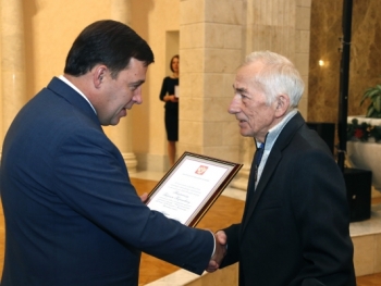 Евгений Куйвашев вручил медаль ордена "За заслуги перед Отечеством" II степени заведующему лабораторией ООО "Урал Рент Груп" Игорю Кузнецову. Почетного звания "Заслуженный экономист России" по решению Президента удостоена заместитель министра финансов Свердловской области Наталья Лобанова. Семи жителям региона объявлена благодарность главы государства. Это директор по общим вопросам УГМК-Холдинга Владимир Белоглазов, слесарь ОКБ "Новатор" Александр Вакула, заместитель главного врача Областного онкологического диспансера Дмитрий Емельянов, администратор ХК "Автомобилист" Юрий Еремин, вальцовщик холодного металла КУМЗа Евгений Морозов, плавильщик КУМЗа Виктор Столбов и заместитель главного конструктора ЗиКа Георгий Накрохин.