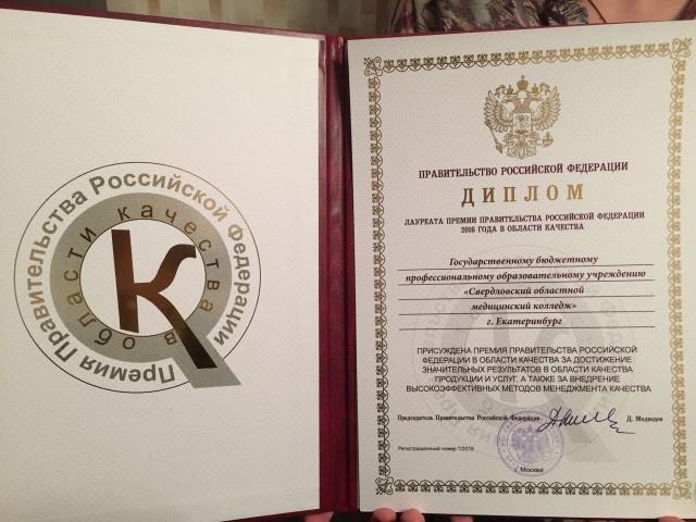 В 2010 году Свердловский областной медицинский колледж уже становился лауреатом премии в области качества.