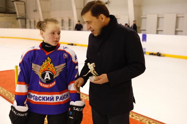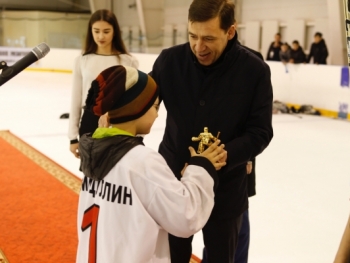 Евгений Куйвашев встретился с юными хоккеистами Екатеринбурга и поздравил финалистов турнира "Золотая шайба"