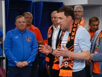 Команды 2 мая сыграли в финале Кубка России на стадионе "Фишт" в Сочи. Матч закончился со счетом 2:0 в пользу "Локомотива". После его завершения Евгений Куйвашев пришел в раздевалку к нашей команде, чтобы поддержать игроков "Урала".