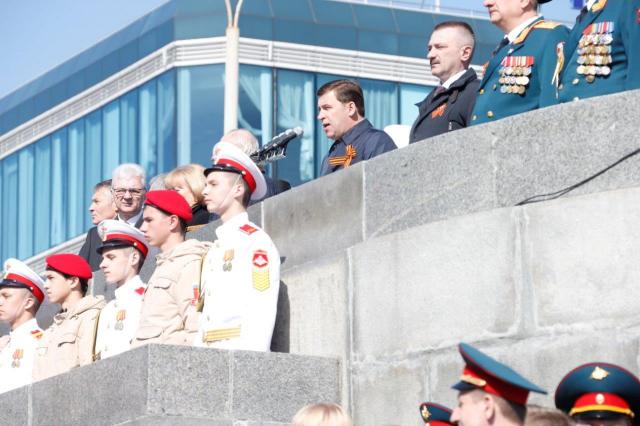 Евгений Куйвашев поздравил ветеранов и всех жителей Свердловской области на параде Победы в Екатеринбурге