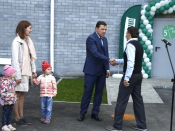 В завершение выступления Евгений Куйвашев от всей души поздравил новосёлов – пожелал им счастливой, благополучной жизни в новом доме, а также поблагодарил строителей, которые качественно реализовали социально значимый жилищный проект.