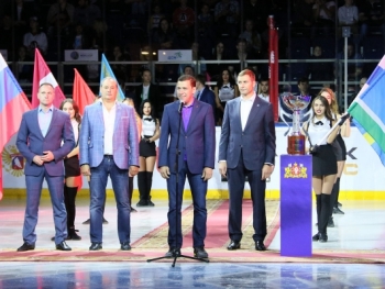Евгений Куйвашев пожелал хоккеистам справедливого судейства и удовольствия от честной, бескомпромиссной игры, а зрителям – отличного настроения и ярких эмоций.