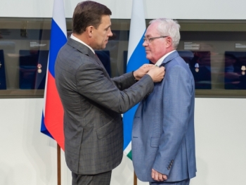 Награды за заслуги перед Свердловской областью из рук Евгения Куйвашева сегодня также получили директор спортивного комплекса "Луч" Рафаил Карманов, проректор Уральского государственного медицинского университета Надежда Давыдова, директор по персоналу УГМК-Холдинга Виктор Олюнин и другие свердловчане.